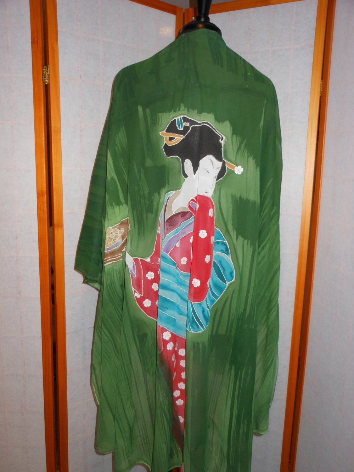 100% Crepe De Chine with hand-painted base and design elements. This item is made-to-order and can be ordered in custom colors – include your colors in the “Order notes” section in checkout.